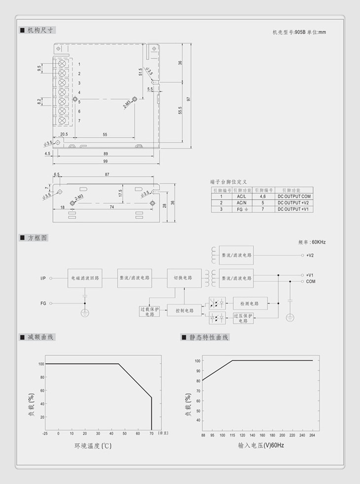 启动上升保持时间 230VAC满载时500ms20ms60ms
