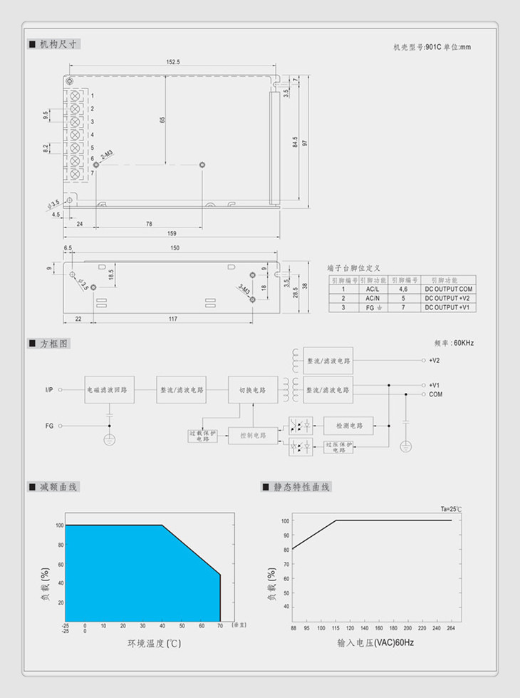 过载保护 过电流点在110%~150%,自动侦测自动复原