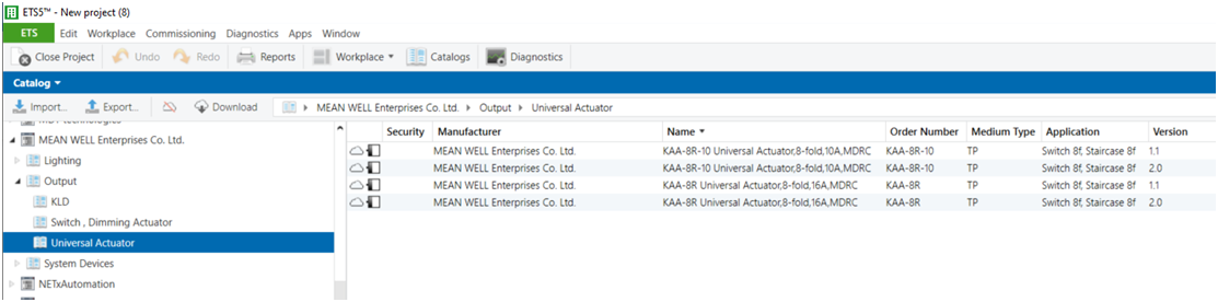 除了现有功能完全保留,新功能可从ETS在线型录KAA-8R application database 2.0版本中查看,亦可由威廉体育网站上KAA-8R产品页面直接下载,需注意application database版本应与表1中所示的韧体版本匹配。